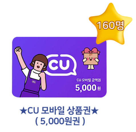🎉이벤트 경품 : 치킨 기프티콘(40명), CU 모바일 상품권 5,000원권(160명)